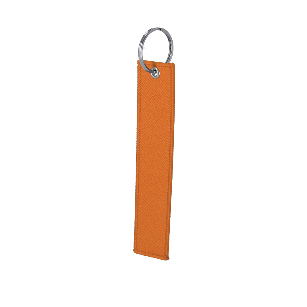 Keychain with seams on the edge in a color matching the polyester body. Includes two silver metal rings. Main ring ideal for keys.
