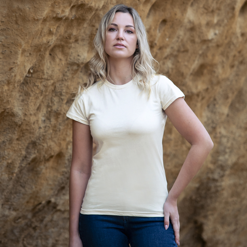 Women's T-shirt Keya Organic Natural. In 100% organic cotton, single jersey material 150g/m2, with natural finish. Organic emblem on the label. Available in sizes S,M,L,XL,XXL.