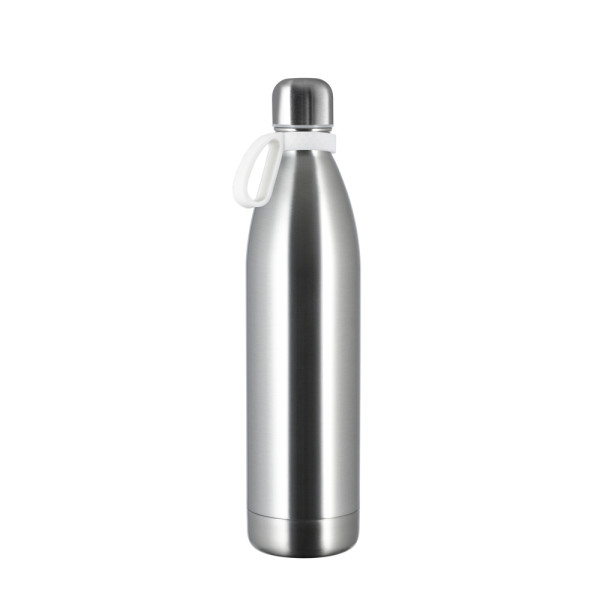 The double-walled thermo drinking bottle holds 750 ml and is the larger alternative to our original model. It keeps your drinks hot or cold and impresses with its particularly large, prominent logo area. It is available either with white or black powder coating or in stainless steel matt silver with anti-fingerprint coating. The screw lid protects against leakage.