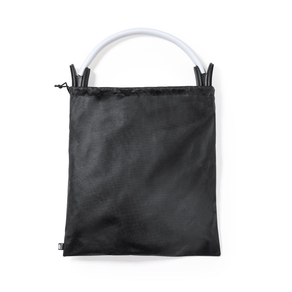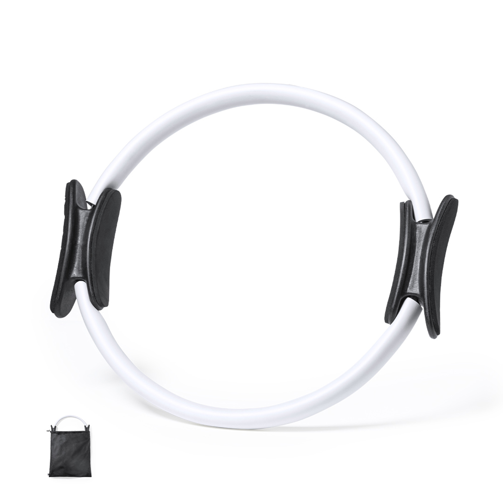 Fitness ring made of durable fibreglass with EVA coating. Ergonomic ABS handles, with instruction manual in English and Spanish. Presented in a non-woven RPET pouch, with drawstring closure and outside label with the RPET distinctive. RPET material is made from recycled plastic, to encourage the reuse of plastic waste and help the sustainability of the planet.