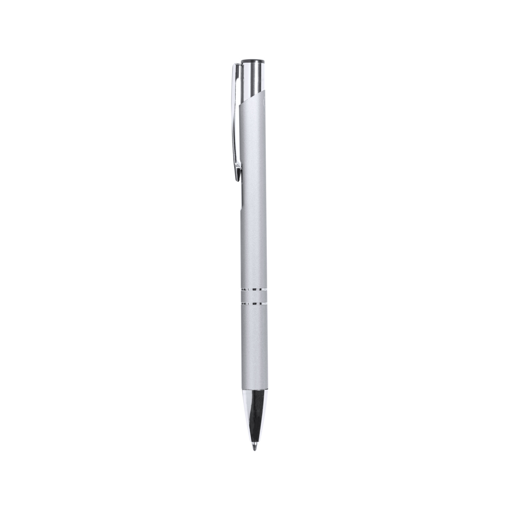 Eco-friendly ball pen made of recycled aluminium. Push-button mechanism, with barrel available in a wide range of metallic colours and chrome plated fittings. With metal clip and recycled aluminium logo on the top of the pen. Jumbo cartridge and blue ink.Recycled aluminum has its origin in the almost infinite reuse of one of the materials with the greatest recyclability potential, keeping the quality of the resulting product. This feature turns it into an eco-friendly material of recycled origin, easily recyclable. Besides, new material and resources can be obtained from treatment and waste processes, consuming less energy among others sustainable factors.GRS Certification (Global Recycled Standard), which guarantees the recycled origin of the material used to manufacture the product.