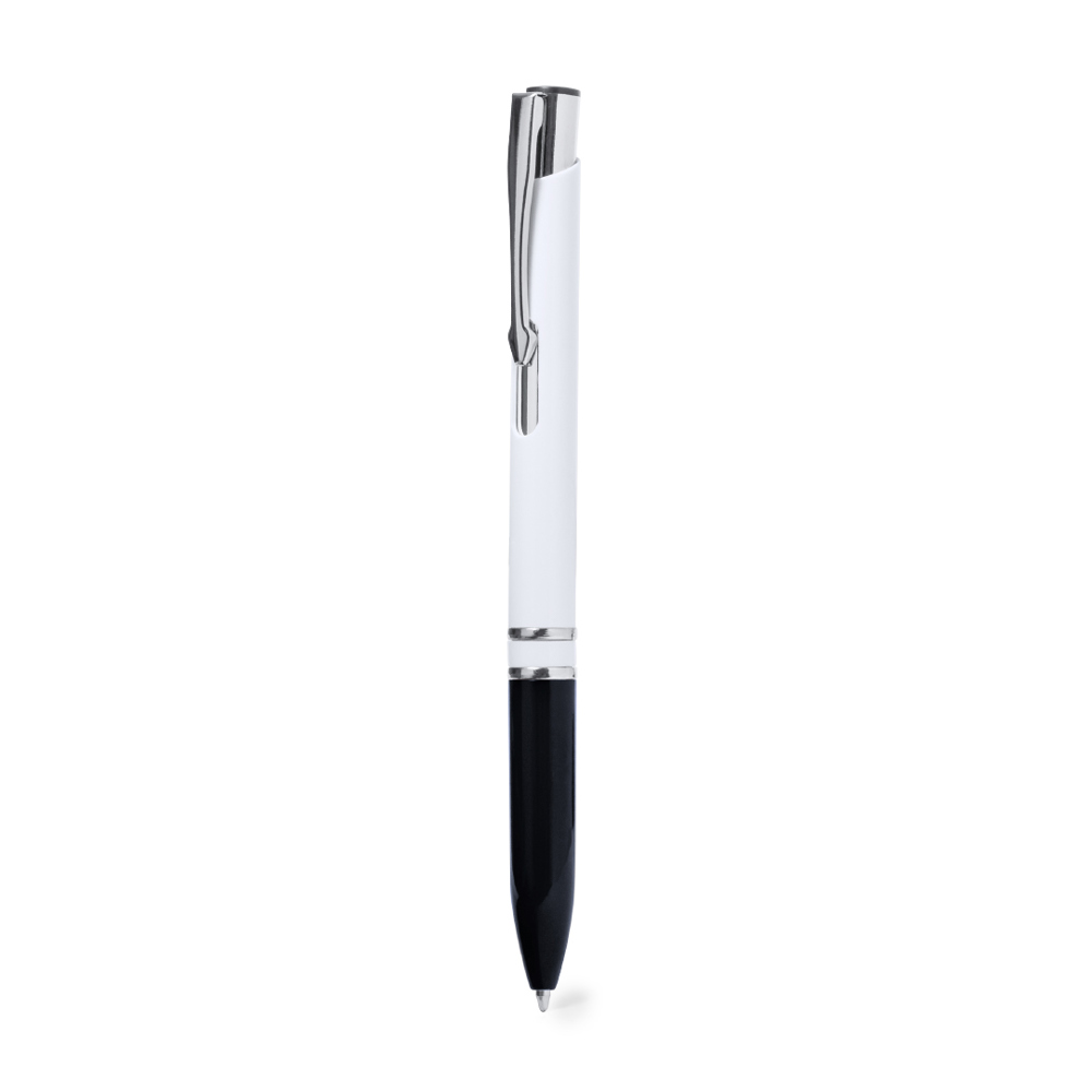 Elegant ball pen with push-button mechanism. With body finished in gloss white and grip in a wide range of colours. Made of durable ABS with glossy finish. Jumbo cartridge and blue ink.