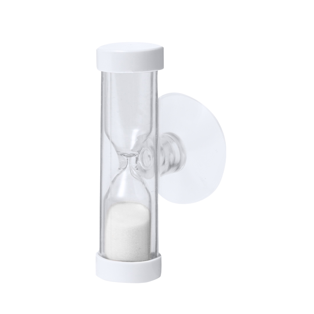 2-minute sand timer clock, especially designed to measure tooth brushing time. With adjustable suction cup.