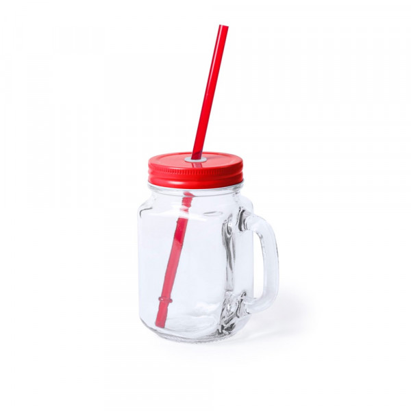 500ml, multi purpose glass jar with cover and straw in bright tones. With metal cover and presented in an attractive design box.Instruction manual available in Spanish and English.