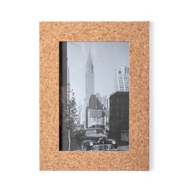 Nature line photo frame made of cork, with protective glass and back stand for horizontal or vertical orientation. Designed for photographs up to 10x15 cm in size. Presented in an attractive individual box with eco design.