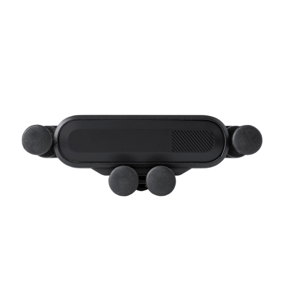 Ingenious smartphone holder with minimalist design and specially designed for XXL smartphones. With universal fixing system that adapts to the weight of the phone, adjusting the grip hooks once the device is placed in the holder. For car air vents and with a specially designed front piece for branding. Presented in a kraft design box.