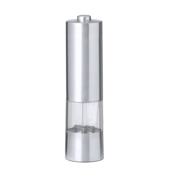 Electric salt and pepper mill in stainless steel. Ideal for adding the most desired spice in the 70 ml compartment, spicing by pressing the top button and adjusting the size of the grain. With a window to view the amount of spice remaining and LED light. Powered by 4 AAA batteries (not included) and presented in a kraft design box.