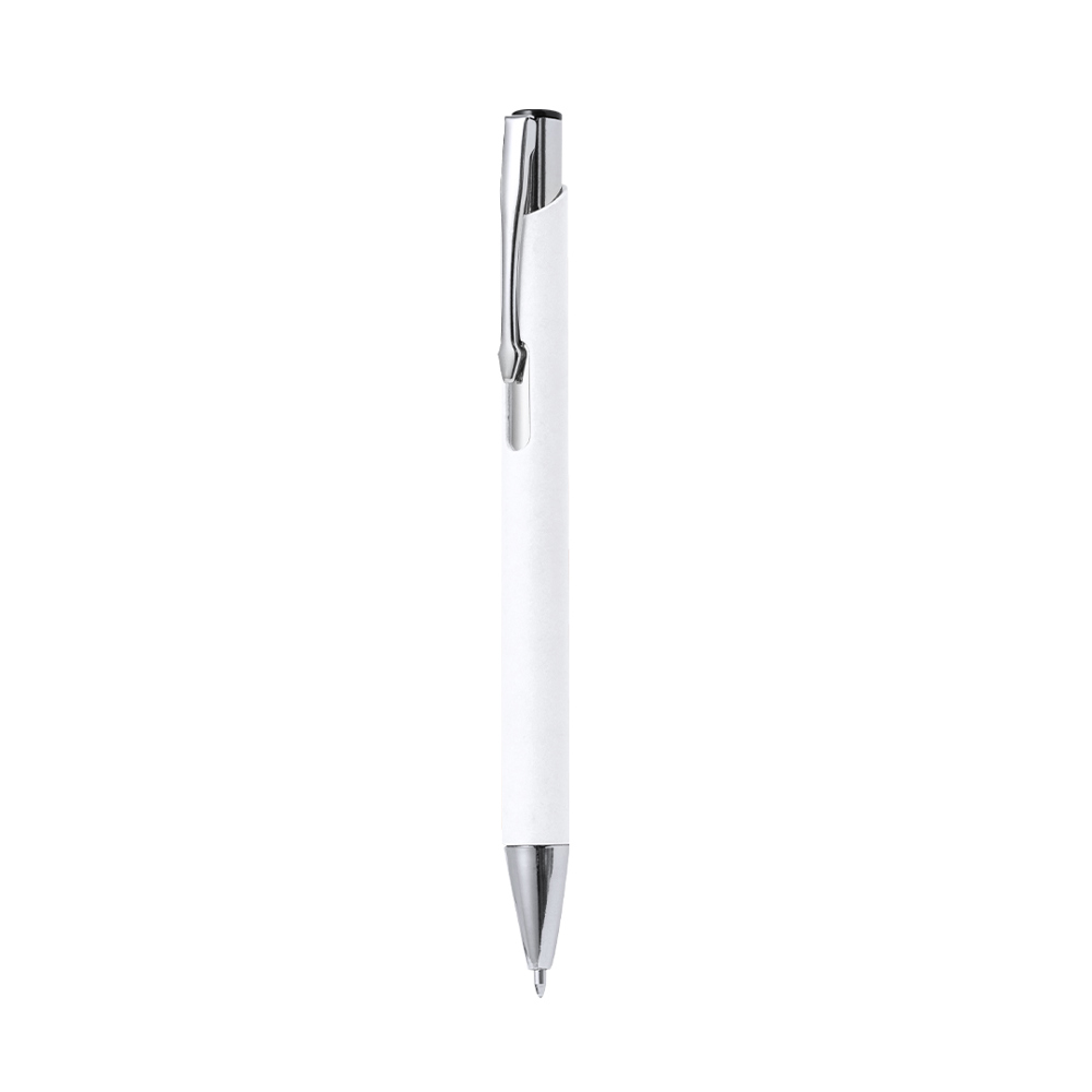 Ball pen with push-button mechanism. Combination of recycled paper barrel in natural colour and metal fittings. Available in a wide range of colours, with blue ink