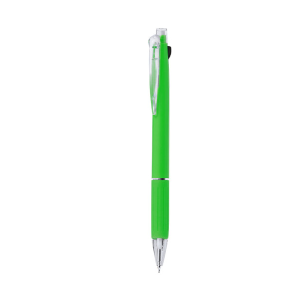 Practical ball pen pointer. Push-button mechanism, with red and black ink and mechanical pencil. Matching push-buttons and a soft grip, pleasant to the touch, with transparent clip and tip. Barrel in a variety of bright colours, with pointer on top.