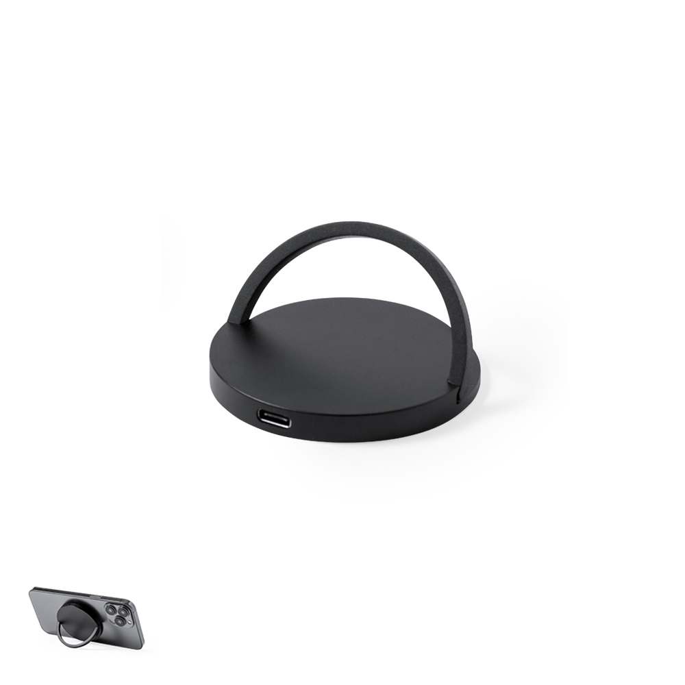 Magnetic wireless charger 15W, made of durable aluminium. With adjustable holder included and charging status indicator. Compatible with devices equipped with wireless charging technology and including 1m USB charging cable with aluminium connector. Large branding surface and presented in an attractive design box. Instructions manualavailable in English and Spanish.Manufactured according to RoHS standards and in compliance with the following safety requirements: Overheating protection system. Over-charge protection system. Blocking system to prevent short circuits.