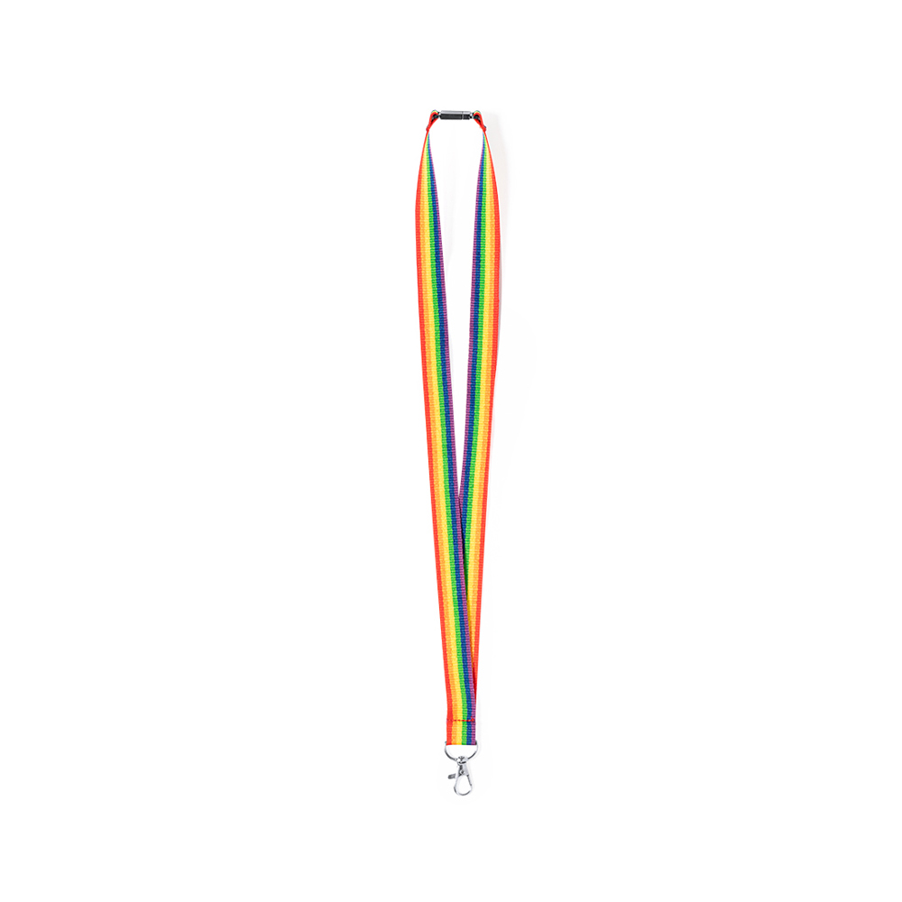 Multicoloured Rainbow lanyard, made in soft polyester. With metal twist hook and neck safety...
