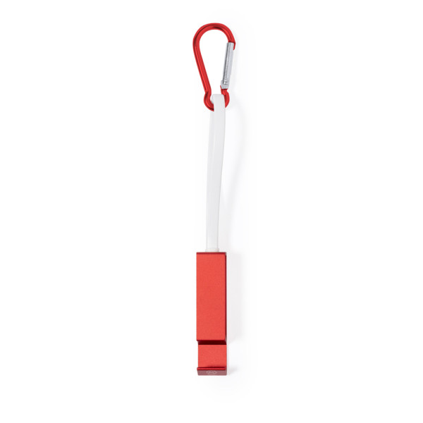 Multi-function charging cable, made of recycled aluminium and with an intelligent design for convenient storage of the charging cables, as well as easy transport. Including matching carabiner and smartphone holder, with Type C connection (input and output) and dual Micro USB / Lightning connection. Available in a variety of metallic finish colours and with Recycled Aluminium logo. Presented in an individual recycled bag.Recycled Aluminium is a material with almost infinite recycling possibilities, keeping its original properties and consuming less energy during this process.GRS Certification (Global Recycled Standard), which guarantees the recycled origin of the material used to manufacture the product.