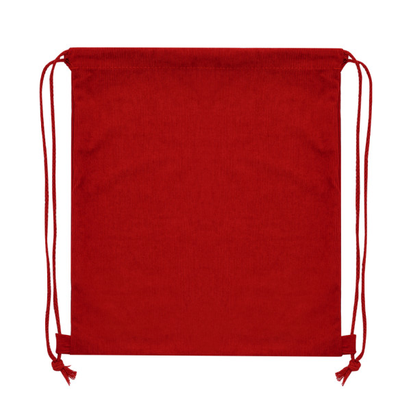 Drawstring backpack made of durable polyester corduroy. Stitched finish, with matching strings...