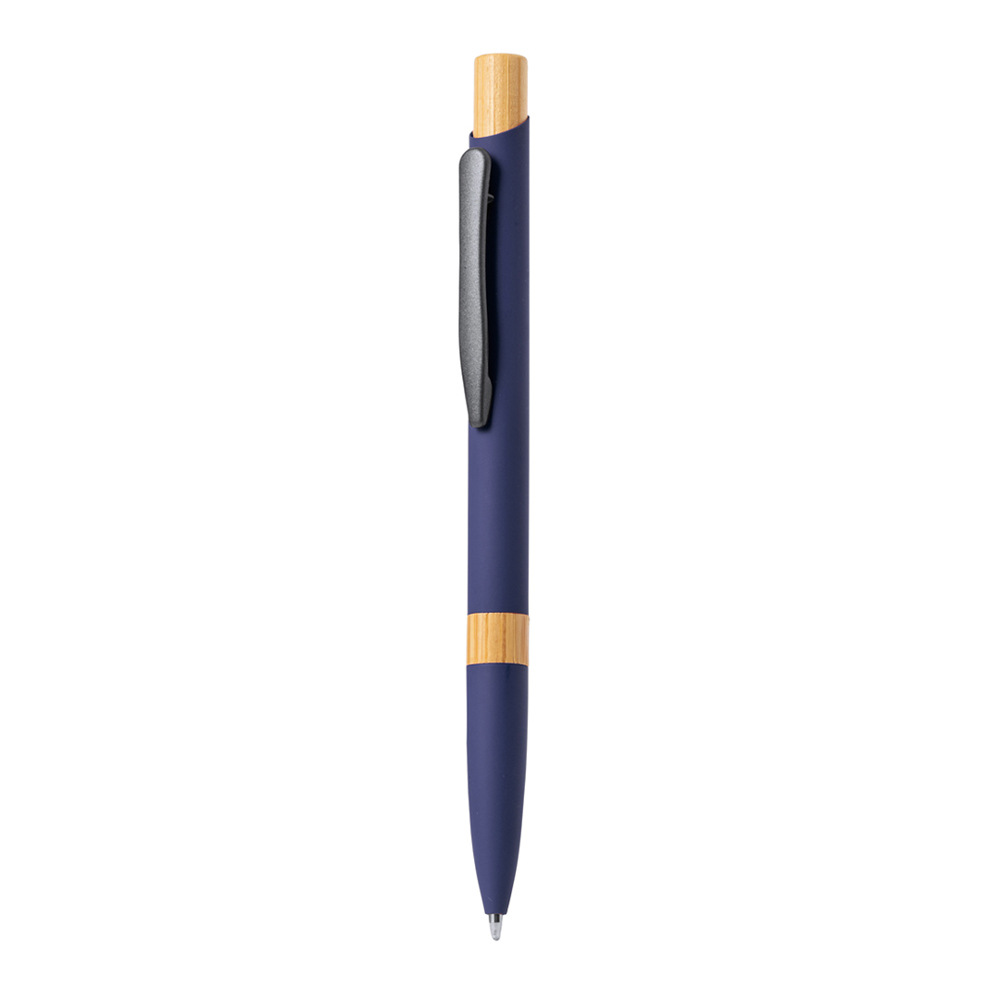 Stylish Aluminium ball pen with push-button mechanism. Barrel with matt rubberised finish and bamboo accents, available in a wide range of distinctive colours. Metal clip, jumbocartridge and blue ink. Presented in an individual recycled bag.Materials such as bamboo promote the use of natural raw materials, thus reducing pollutant emissions. It comes from a highly resistant and versatile plant, with rapid growth and regeneration, making it an excellent alternative to the use of traditional wood.