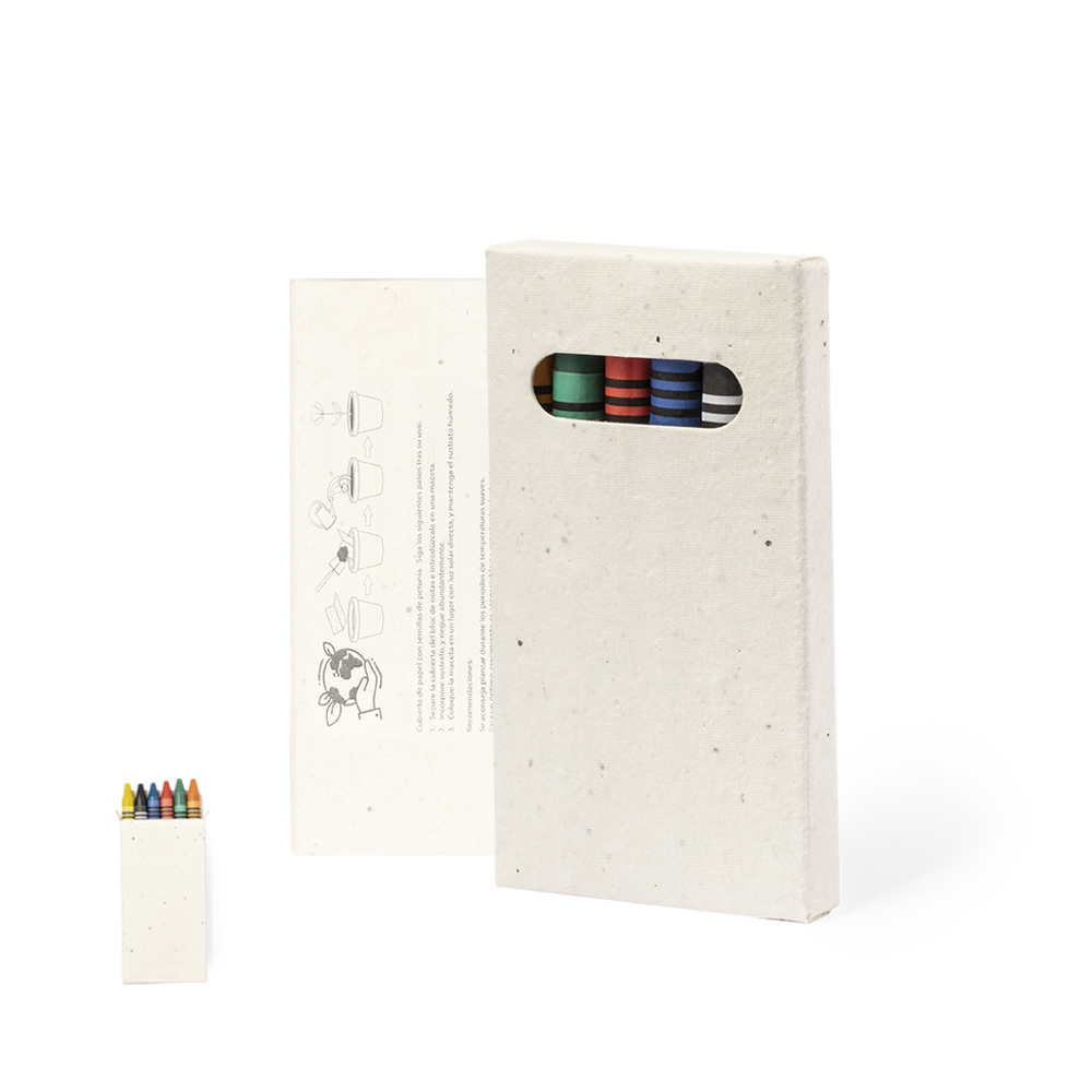 Set of 6 crayons in a natural cardboard box with seeds. Includes petunia seeds in the box, making...
