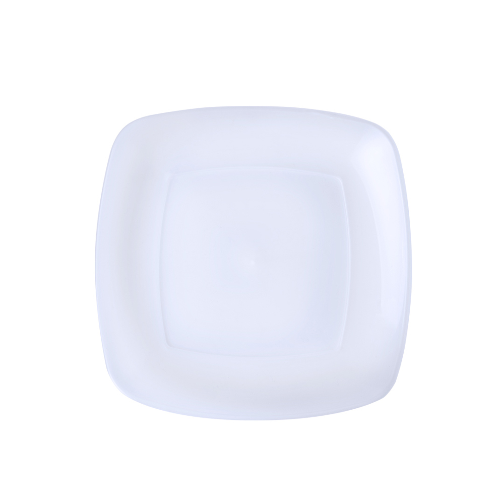 Flat dish made of strong and flexible PP material. Square shape, reusable and in translucent finish.
