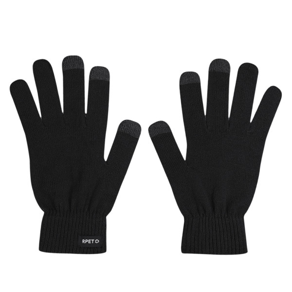 Gloves made of warm and soft RPET polyester fabric, for touchscreen devices. Featuring touchscreen functionality on the middle, index and thumb fingers in matching color. With RPET label.RPET material is made from recycled plastic, thus promoting the reuse of plastic waste and helping the sustainability of the planet.