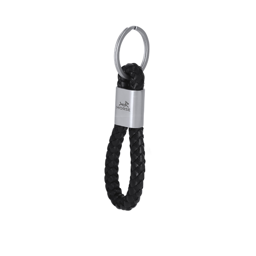 Elegant key ring with braided PU leather cord. Including a matt alloy central piece, specially designed for laser branding.