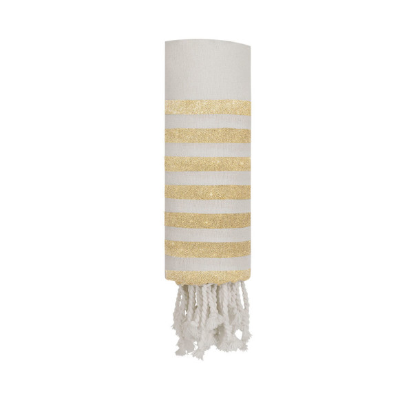 Towel Pareo made of recycled cotton of 180g/m2. White striped design combined with golden glitter...