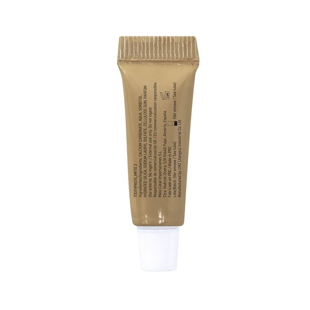 Dental set with toothbrush and toothpaste. Content: Toothbrush made of bamboo.Toothpaste included in a 3 gr tube, with screw cap.In natural colors and presented in an individual recycled cardboard case.Materials like bamboo promote the use of natural raw materials while reducing polluting emissions. Additionally, bamboo comes from a highly resilient and versatile plant, with rapid growth and regeneration, making it an excellent alternative to traditional wood.