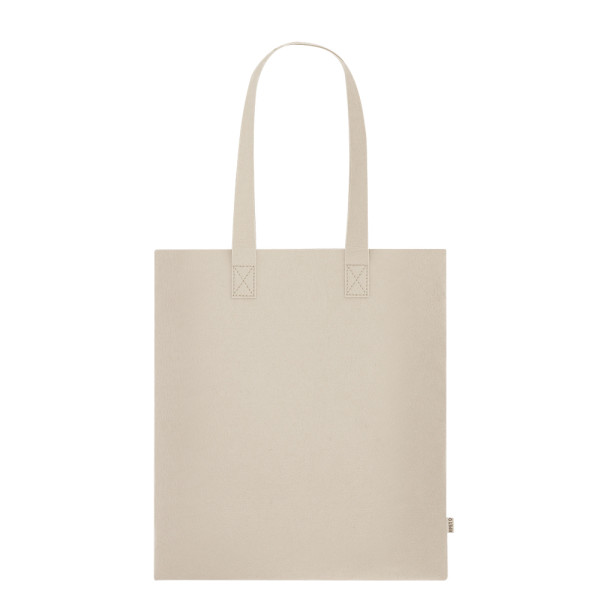 Bag made of recycled RPET felt. With long reinforced handles. Resistance up to 6 kg. Includes RPET label on the outer tag.RPET material is made from recycled plastic to promote the reuse of plastic waste and help the planet's sustainability.