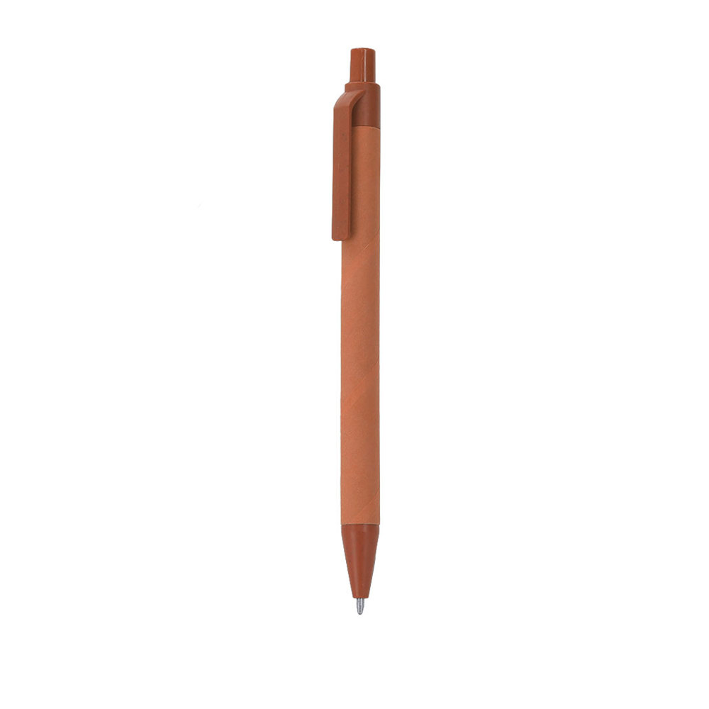 Pen made of recycled cardboard combined with wheat straw. Push-button mechanism and blue ink. Includes Wheat Straw label.Recycled cardboard comes from repurposing surplus production and recycling paper at the end of its useful life, turning into an eco-friendly and sustainable canvas.Wheat straw promotes the use of natural raw materials, thus reducing polluting emissions.