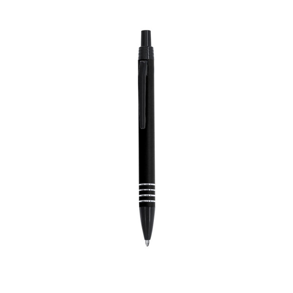 Pen made of Recycled Aluminum. Push mechanism, with black accessory and silver rings. Jumbo... more