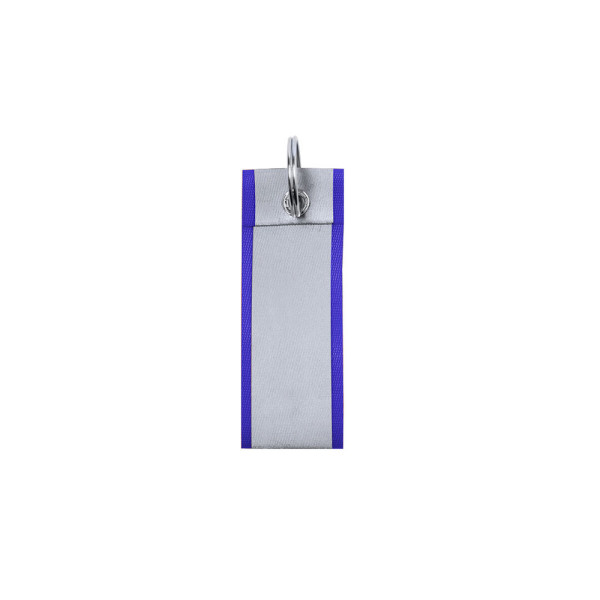 Polyester keychain with a reflective band.