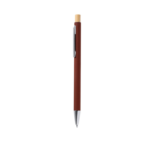 Push-button pen made from recycled aluminum. Bamboo button and body finished in matte rubber.... more