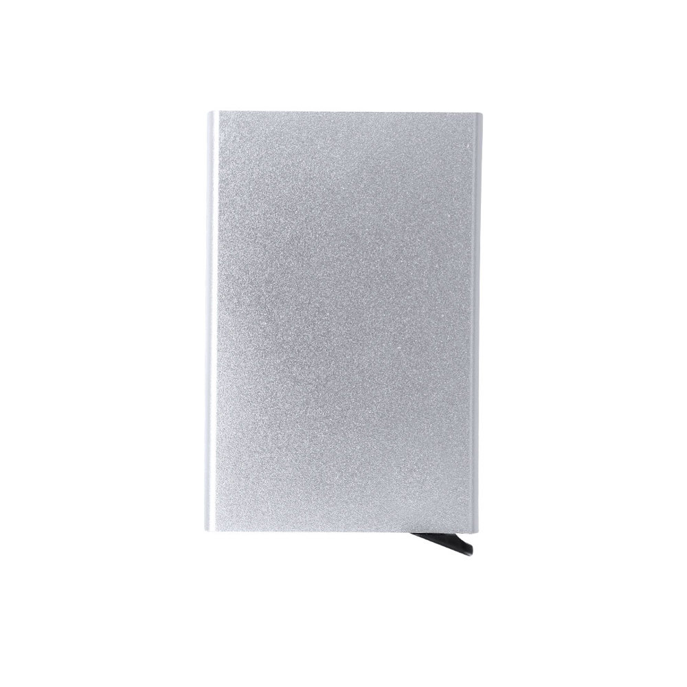 Cardholder made from recycled aluminum. Capacity for up to 10 cards, with an ingenious sliding mechanism for easy access to the cards. RFID (Radio Frequency Identification) security technology that keeps your identity transmission devices secure. RFID and Recycled Aluminum labels.Recycled aluminum is a material with almost infinite recycling possibilities, without losing its original properties and consuming less energy in the process.GRS certification (Global Recycled Standard), which guarantees the recycled origin of the material used to manufacture the product.