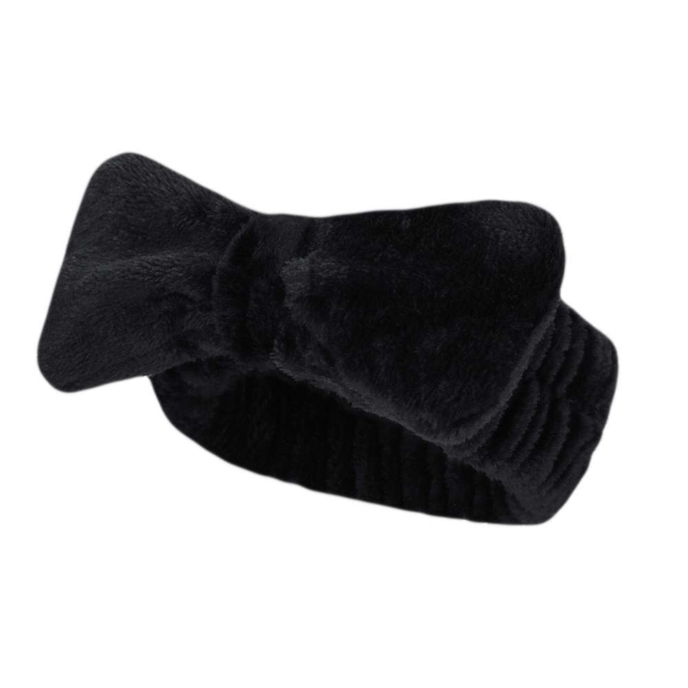 Crown-style headband, adorned with an elegant bow. Made from soft and stretchy polyester, ideal for facilitating facial cleansing routines.