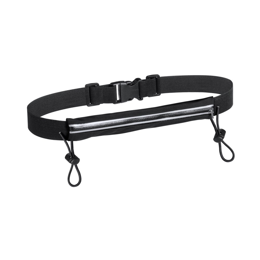 High quality, splash-resistant, waist bag with number holder. In spandex material with a smooth finish and with a grey color zipper. Designed for sports and leisure activities. Elastic bands for number with fitting accessories. With adjustable elastic waist bag and buckle closure.