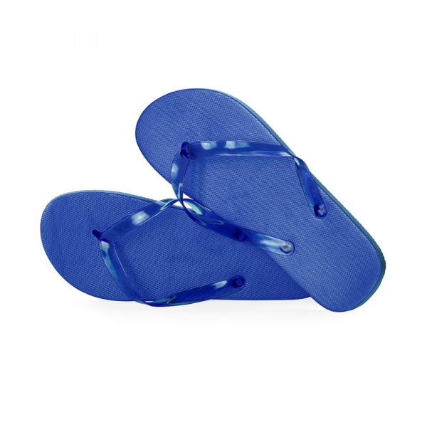 Pair of flip flops made of EVA and PVC. Sole made of durable EVA for high durability and ergonomic straps made in matching color PVC. Available in a range of vibrant colours to suit every style. In sizes 36-38 and 42-44.