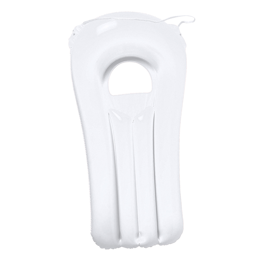 Original PVC inflatable mattress with transparent window and carrying string in bright tones.