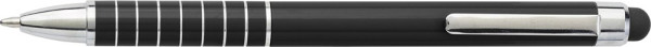 Aluminium lacquered ballpen with a rubber tip suitable for capacitive screens and twist action mechanism. Blue ink.
