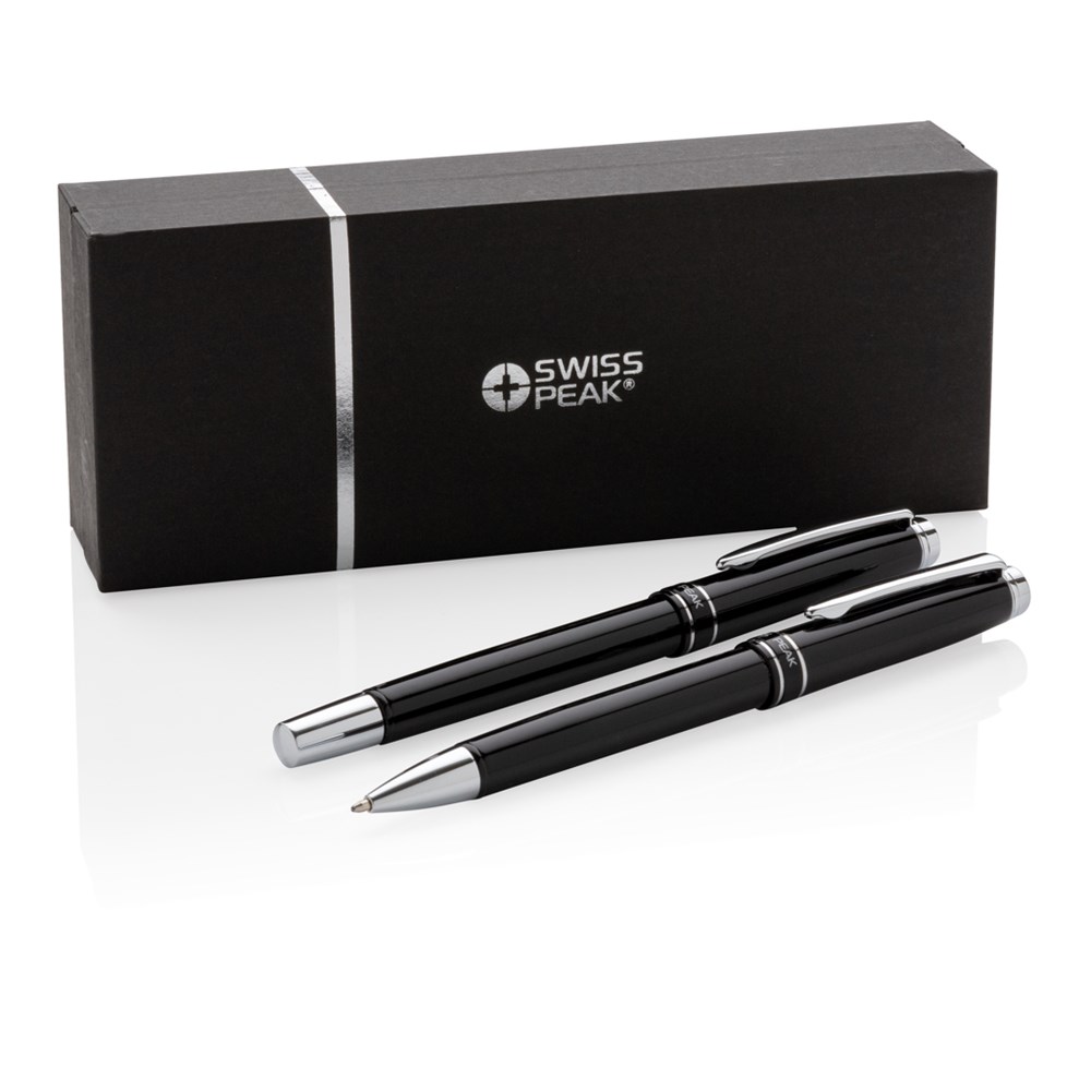 The Swiss Peak Heritage collection speaks the language of modern elegance. Luxury brass metal ballpen and rollerball set packed in Swiss Peak giftbox. Both metal refills with minimum of 1200m writing length and German ink.