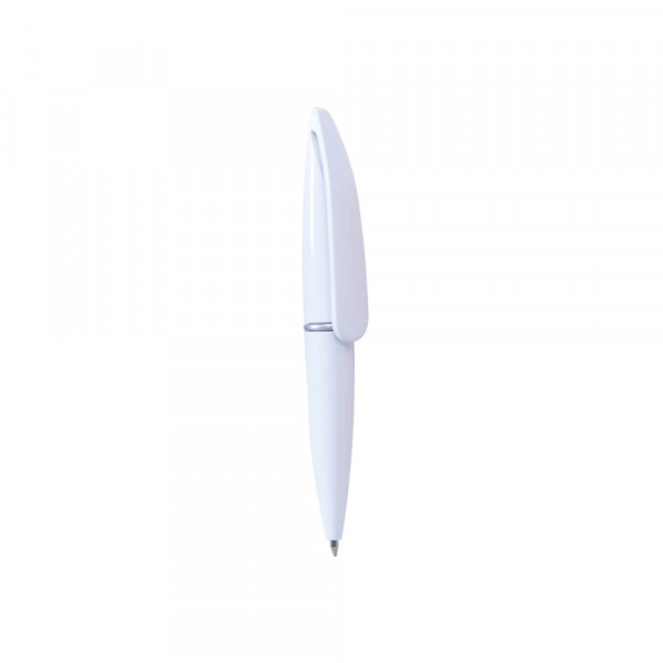 Mini ball pen with twist mechanism in bold solid colors. With original oversized clip and silver colored center ring. Blue ink.