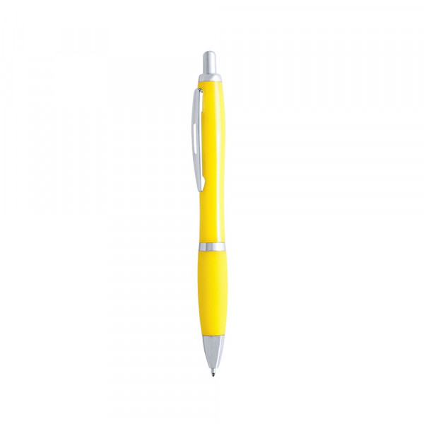 Push-up ball pen in bold bicolor design with silver colored accessories and smooth body in fun solid colors. With original metal clip stamped in matching color and comfortable grip. Blue ink.