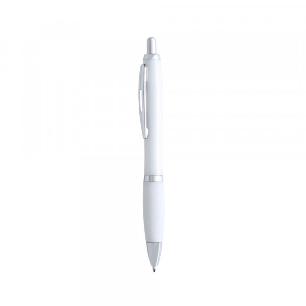Push-up ball pen in bold bicolor design with silver colored accessories and smooth body in fun solid colors. With original metal clip stamped in matching color and comfortable grip. Blue ink.