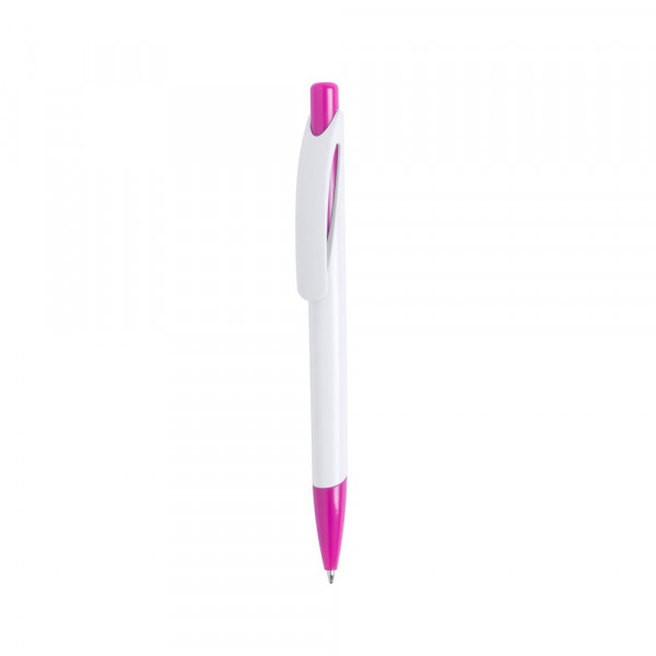 Push-up ball pen with bold bicolor design with accessories in bright solid colors and soft body in solid white. With original curved clip and matching color tip.