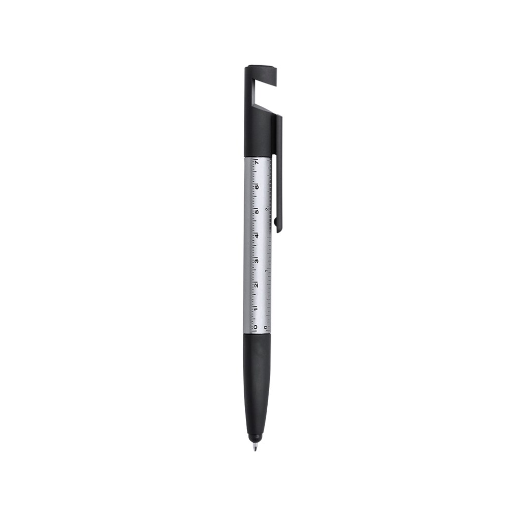 7-in-1 ball pen with twist mechanism in a wide range of bright tones. With holder for mobile device, pointer, screen cleaner, built-in ruler -cm and inches-, flat-head and cross-head screwdrivers. Blue ink.