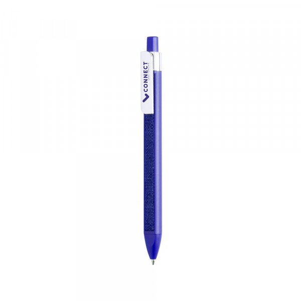 Original push-up mechanism ball pen with quadrangular design and soft fabric strip integrated in the body. In a wide range of bright tones and with rectangular clip for printing. Blue ink.