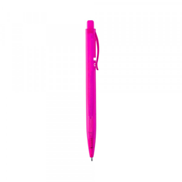 Stylish ball pen with cuadrangular body in frosted finishing. Push-up mechanism, original clip and available in a wide range of vivid colors. Blue ink refill.