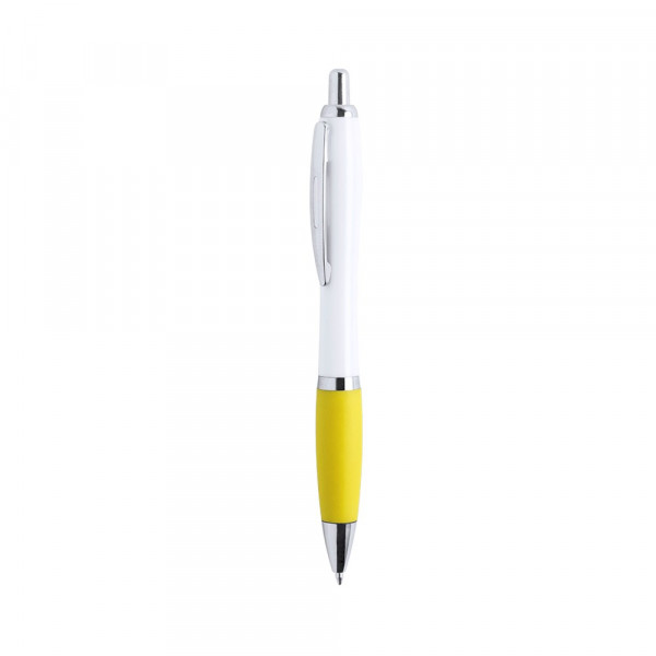 Ball pen in a vivid, bicolor design, with body in white color and grip in a wide range of eye-catching colors. Push-up mechanism, with chromed details, metal clip and blue ink.