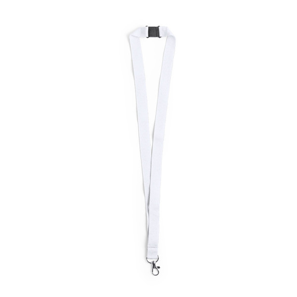Lanyard in resistant polyester, with neck security accessory and metal carabiner. Available in a...