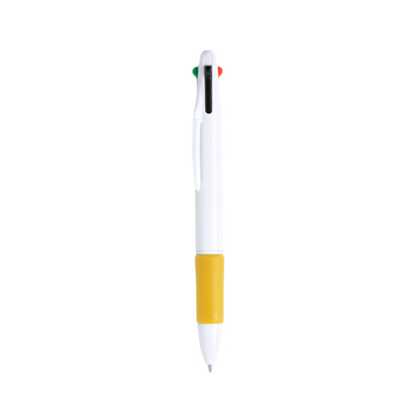 Ball pen 4-in-1 with retractable push-up mechanism, classic design and solid color body in white. Soft-touch, color grip in bright tones. 4 cartridges in blue, red, black and green ink.