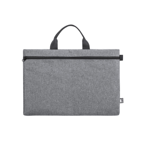 Document holder of nature line and in resistant 600D RPET melange effect, made from recycled plastic to promote the reuse of plastic waste and contribute to the sustainability of the planet. Black details and main compartment with zipper. Durable, matching color handles and RPET distinctive on the outside label.