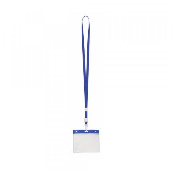 Identifier in PVC with matching color lanyard in bright tones and with carabiner closure....
