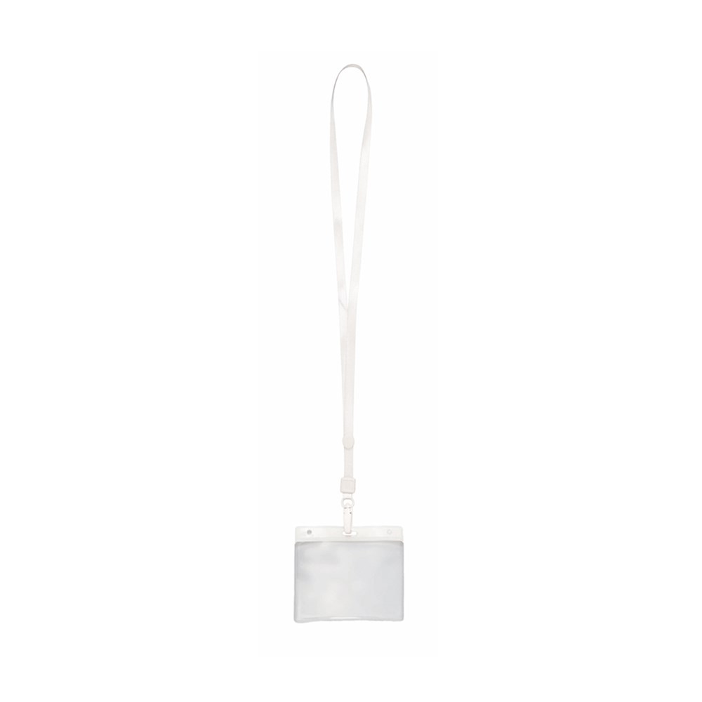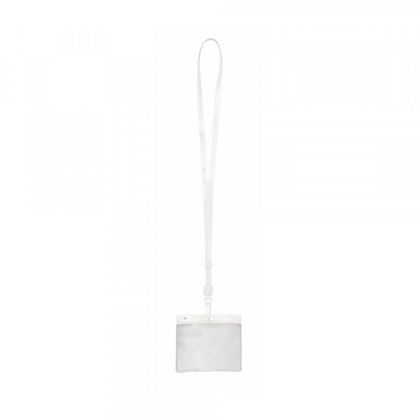 Identifier in PVC with matching color lanyard in bright tones and with carabiner closure....