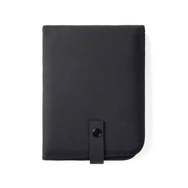 • •  Travel adapter with logo